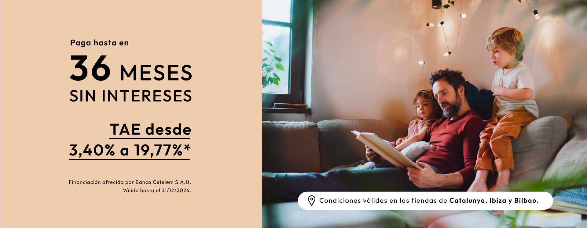 Intereses subvencionados por Muebles La Fábrica. Oferta sujeta a la autorización previa de Banco Cetelem S.A.U., tras el estudio de la documentación aportada y firma del contrato. Sistema de amortización francés. La TAE puede verse alterada en función del plazo de la operación debido a la existencia de una comisión de formalización. Fecha de validez de las ofertas hasta el 31/12/2026.